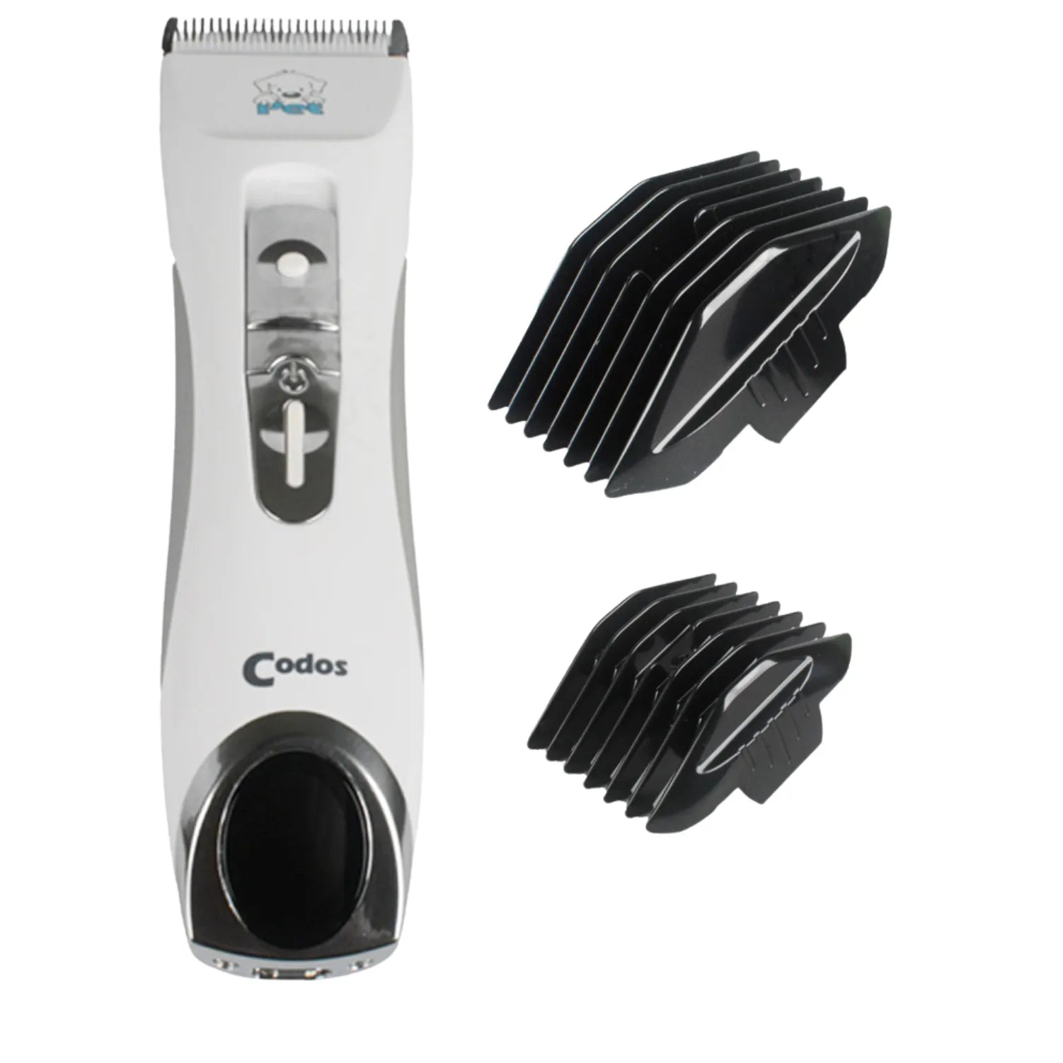 Give your furry friend a stress-free grooming experience with the Codos CP-9600 Professional Pet Hair Trimmer. This advanced cordless trimmer is designed for safe, silent, and powerful performance—perfect for both dogs and cats. Featuring a stainless steel fixed blade paired with a ceramic moving blade, it ensures precise and smooth trimming without pulling or overheating.