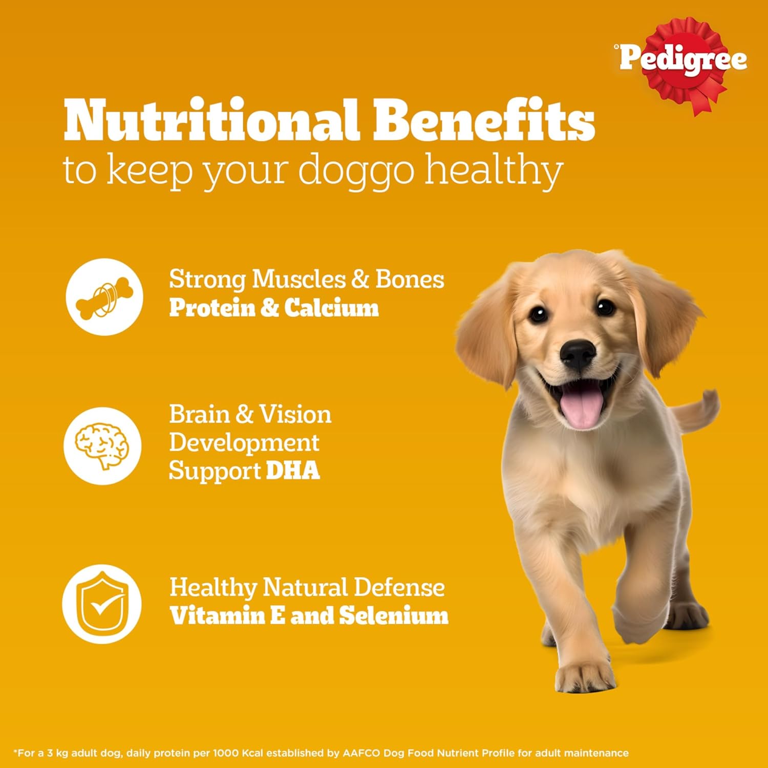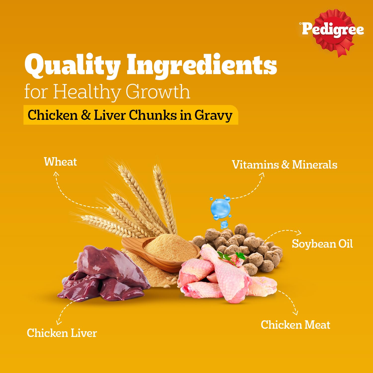 Make every mealtime a blend of taste and nutrition for your Puppy with Pedigree. Formulated with real meat and superior protein, Pedigree Puppy Wet Dog Food, Chicken & Liver Chunks in Gravy, guarantees that you are serving a meal that makes your puppy smile and stay healthy. This thrilling meal is filled with gravylicious chicken & liver chunks that your beloved pet will enjoy. Nutrient-dense with all the nutrients your puppy needs, it is a 100% complete and balanced meal that gives your puppy all the nutrients to grow healthy and strong. Protein & Calcium for strong muscles & bones and DHA for brain & vision development. Vitamin E & Selenium for a healthy natural defense. The water content in the meal keeps your dog well-hydrated. At Pedigree, recipes are formulated on research conducted by the Waltham Centre for Pet Nutrition. All Pedigree products adhere to the specifications prescribed by NRC 2006 of the U.S. National Academy of Science. Provide your dog with the goodness of Pedigree to fulfill their indulgences and nourish their healthy living.
