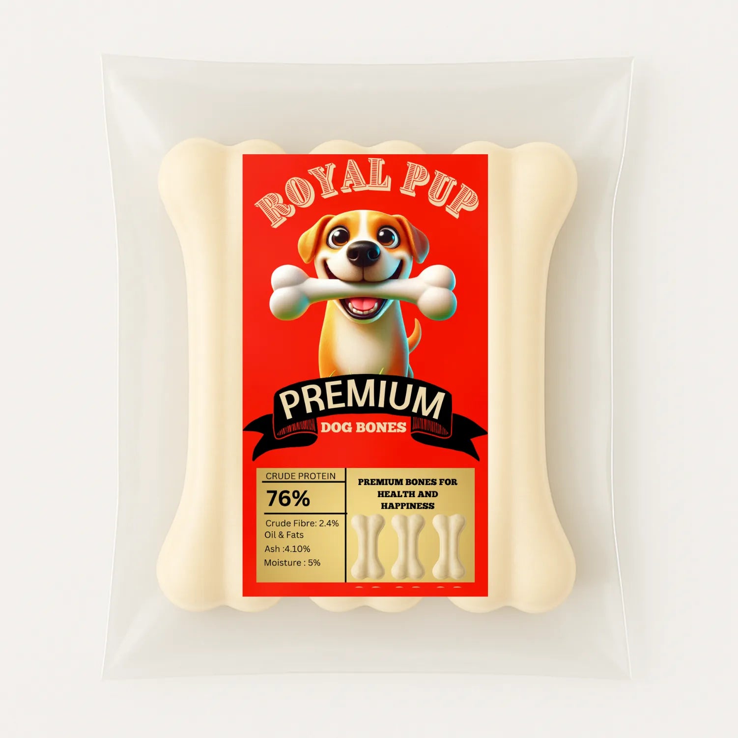 Royal Pup 5 inch calcium bones are specially crafted for dogs above 4 months of age, perfect for medium and large breeds like Labrador Retriever, Golden Retriever, German Shepherd, Boxer, and similar. Each bone is enriched with calcium and minerals to promote stronger teeth and healthier bones while satisfying your dog’s natural chewing instinct. The 5-inch size makes them ideal for moderate chewers, helping reduce tartar and plaque buildup.